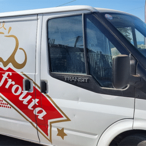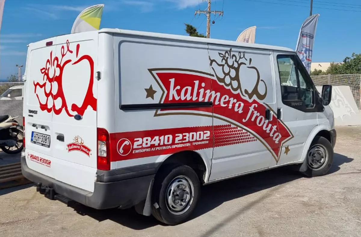 Self-adhesive long-lasting sticker placed on a truck. Suitable for outdoor use (windows, doors, refrigerators, front or rear of any vehicle, inflatable boats, trucks, commercial trucks, tractors, buses, jeeps, motorcycles, and any other commercial vehicle). Safe for use on outdoor windows and doors. Resistant to sunlight and weather.